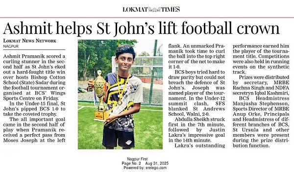 Gallery_2025-26 Inter School Science Talk 2025-26 Inter School Science Talk 2025-26 (2) Inter School Science Talk 2025-26 (3) Inter School Science Talk 2025-26 (4) Inter School Science Talk 2025-26 (5) Inter School Science Talk 2025-26 (6) Inter School Science Talk 2025-26 (7) Inter School Science Talk 2025-26 (8) Inter School Science Talk 2025-26 (9) Inter School Science Talk 2025-26 (10) Inter School Science Talk 2025-26 (11) Inter School Science Talk 2025-26 (12) Inter School Science Talk 2025-26 (13) Inter School Science Talk 2025-26 (14) Inter School Science Talk 2025-26 (15) Inter House English Grammar Quiz 25 -26(Middle School) (12) Inter House English Grammar Quiz 25 -26(Middle School) (11) Inter House English Grammar Quiz 25 -26(Middle School) (10) Inter House Computer Quiz 25 -26(Middle School) (9) Inter House Computer Quiz 25 -26(Middle School) (8) Inter House Computer Quiz 25 -26(Middle School) (7) Inter House Computer Quiz 25 -26(Middle School) (13) Inter House Computer Quiz 25 -26(Middle School) (6) Inter House Computer Quiz 25 -26(Middle School) (5) Inter House Computer Quiz 25 -26(Middle School) (4) Inter House English Grammar Quiz 25 -26(High School) (3) Inter House English Grammar Quiz 25 -26(High School) (2) Inter House Computer Quiz 25 -26(High School) MAH STATE SCHOLARSHIP EXAM -2025 CYBER AWARENESS Golden Medal won by Purvi Nagdavne Football (2) FootBall National Sports Day St. John’s High School clinched the U-16 Inter-School Football title hosted by Bishop Cotton School. St. John’s High School clinched the U-16 Inter-School Football title hosted by Bishop Cotton School. (3) St. John’s High School clinched the U-16 Inter-School Football title hosted by Bishop Cotton School. (2) Dental Camp Dental Camp (2) Dental Camp (3) Dental Camp (4) Dental Camp (5) Dental Camp (7) Dental Camp (6) Stood 2nd in INTACH HERITAGE QUIZ. Inter School Dance Competation-1 Inter School Dance Competation-2 Inter School Dance Competation-3 RunerUp 2025-26_ Neharu Tournament English Language Competation 25 RakshaBandhan with Police Department 25 Inter - School Extempore speech Inter - School Extempore speech (2) Inter - School Extempore speech (3) Inter - School Extempore speech (4) Inter - School Extempore speech (5) Inter - School Extempore speech (6) Inter - School Extempore speech (7) Inter - School Extempore speech (8) Inter - School Extempore speech (9) Inter - School Extempore speech (10) Eco club organised tree plantation Eco club organised tree plantation (2) Eco club organised tree plantation (3) Eco club organised tree plantation (4) Solo Dance Competition(High School) Solo Dance Competition(High School) (2) Extempore Speech (High School) (2) Solo Dance Competition(High School) (3) Solo Dance Competition(High School) (4) Solo Dance Competition(High School) (5) Solo Dance Competition(High School) (6) Solo Dance Competition(High School) (7) Solo Dance Competition(High School) (8) Solo Dance Competition(High School) (9) Extempore Speech (High School) (5) Solo Dance Competition(High School) (11) Solo Dance Competition(Middle School) (13) Solo Dance Competition(High School) (14) Solo Dance Competition(High School) (15) Students from class 8th to 10th visited CSIR labs Kargil vijay diwas awareness Annual training camp CATC-609 Extempore Speech (High School) Extempore Speech (High School) (3) Extempore Speech (High School) (4) Extempore Speech (High School) (6) Extempore Speech (High School) (7) Extempore Speech (High School) (8) Extempore Speech (High School)(9) HITWAD 27-7-2025 Solo Dance Competition(High School) (10) HITWAD 19-7-2025 Investiture Ceremony 2025-26 Investiture Ceremony 2025-26 (2) Investiture Ceremony 2025-26 (3) Investiture Ceremony 2025-26 (4) Investiture Ceremony 2025-26 (5) Investiture Ceremony 2025-26 (6) Investiture Ceremony 2025-26 (7) Investiture Ceremony 2025-26 (8) Investiture Ceremony 2025-26 (9) Investiture Ceremony 2025-26 (10) Investiture Ceremony 2025-26 (11) Investiture Ceremony 2025-26 (12) Investiture Ceremony 2025-26 (13) Investiture Ceremony 2025-26 (14) Investiture Ceremony 2025-26 (15) Investiture Ceremony 2025-26 (16) Investiture Ceremony 2025-26 (17) Investiture Ceremony 2025-26 (18) Investiture Ceremony 2025-26 (19) PTA meeting 2025-26 PTA meeting 2025-26 (2) PTA meeting 2025-26 (3) PTA meeting 2025-26 (4) Poetry Recitation & Story Telling (middle school) Poetry Recitation & Story Telling (middle school) (2) Poetry Recitation & Story Telling (middle school) (3) Poetry Recitation & Story Telling (middle school) (4) Poetry Recitation & Story Telling (middle school) (5) Poetry Recitation & Story Telling (middle school) (6) Poetry Recitation & Story Telling (middle school) (7) Poetry Recitation & Story Telling (middle school) (8) Poetry Recitation & Story Telling (middle school) (9)
